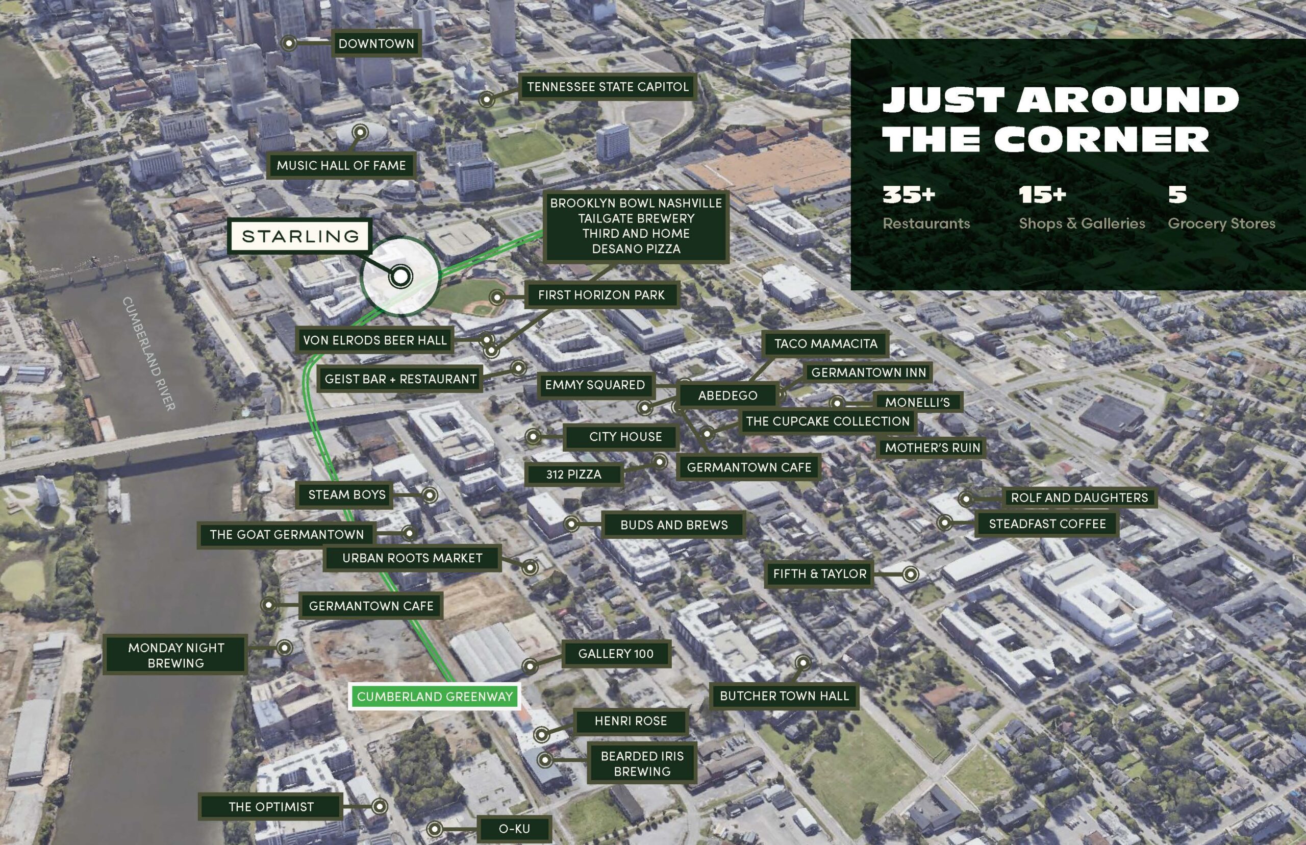 Situated directly on a greenway that connects you to the Gulch and Cumberland River, Starling encourages you to explore more each day. Enjoy pedestrian access to retail, entertainment, and dining destinations just next door.